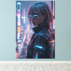 Cyberpunk Cityscape Poster Futuristic Female Hacker with Neon Tech Jacket | Metamorphosis Concept Art
