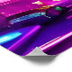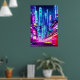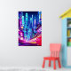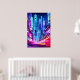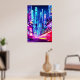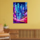 AI generated image of a cyberpunk city with futuristic tall buildings and blue/pink neon lights. It's a digital concept Art with sharp details and bright colours.