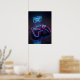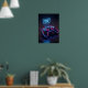 Transform your gaming room with this cyberpunk gaming controller poster featuring neon lights and futuristic vibes. This close-up illustration showcases a gaming controller outlined in neon pink, blue, and purple, resting on a reflective black surface with faint glowing circuit lines. A small holographic sign above the controller projects the phrase “GAMING ZONE” in neon blue, set against a dark gradient background with minimal pixel glitch effects for added atmosphere. With its high-contrast, clean composition, this artwork is perfect for cyberpunk enthusiasts, gamers, and collectors seeking a striking, futuristic decor statement for their gaming setups.