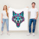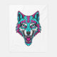 Cyberpunk Neon Wolf - Synthwave Robotic Animal Fleece Blanket