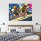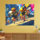 Cyberpunk Runners Sprint Neon Rain City Action Art Canvas Print