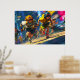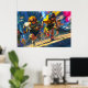 Cyberpunk Runners Sprint Neon Rain City Action Art Poster
