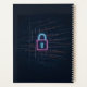 Tech-inspired planner featuring a neon padlock over code, designed for cybersecurity experts, programmers, and students. Organise schedules, track goals, and plan projects while showing your passion for digital security.