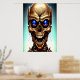 Golden coloured cyborg skull with deep blue eyes. This is a AI generated art.