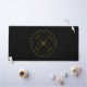 Cycles desk mat. Cycles is a Germanic design created by Anna M. Asbury and consists of a black background with an Aegishjalmr the center and encircled by Elder Futhark Runes. The design is enclosed in a diamond with the Ingwaz Rune, flanked on all four sides with a bind rune, and encircled by the Jera and Ingwaz Runes.