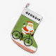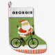 Creative cycling holiday biking Christmas stocking gift featuring Santa cyclist riding a Christmas bike. Edit text to add name.