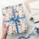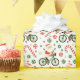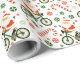 Creative biking holiday gift wrap featuring cyclist Santa cycling on a bicycle surrounded by Christmas treats.