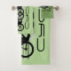 Cycling Design Bath Towel Set with customisable background colour and text on all three pieces.