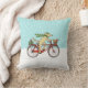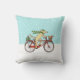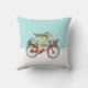 Cute cartoon dog wearing a green striped winter hat and long scarf and pedaling a red bicycle. Cheerful red squirrel is riding in the bike basket. These two are on their way to deliver Christmas presents to friends. This whimsical decorative pillow will add some holiday cheer to your sofa or bed. Makes a wonderful Christmas gift for animal lovers. Check out Jenn’s Doodle World for even more fun animal art and seasonal home decor.