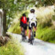 Two road racing cyclists enjoying the country lanes of Wales. Watercolor.