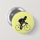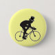 Bicycle groom has a male cyclist in black on a black bike with a top hat instead of a helmet.