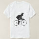 Bicycle groom has a male cyclist in black on a black bike with a top hat instead of a helmet.