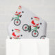 Cycling Christmas holiday gift tissue or party decor featuring funny Santa cyclist riding a bike.