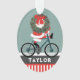 Creative cycling Christmas ornament holiday gift with cartoon Santa bike riding. Edit text to easily customise by adding name of your favourite cyclist.