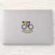 Cyclist riding his bicycle contour sticker featuring a tiled minimalist icon of a black cycling silhouette wearing yellow top.