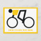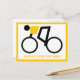 Cyclist riding his bicycle custom horizontal postcard featuring a minimalist icon of a black cycling silhouette wearing yellow top and your text on white background with yellow border.