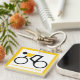 Cyclist riding his bicycle acrylic keychain featuring a minimalist icon of a black cycling silhouette wearing yellow top and your text on white background with yellow border. The perfect gift for those bicycling athletes or just biking lovers in your life.