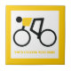 Cyclist riding his bicycle ceramic tile that features a minimalist icon of a black cycling silhouette wearing yellow top and your text on white background with yellow border. The perfect gift for those bicycling athletes or just biking lovers in your life.