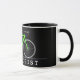 Cycologist in white text on black with bright lime green bicycle on grey line.