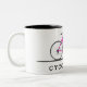 Cycologist text with pink bicycle Two-Tone coffee mug