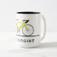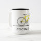 Cycologist text with yellow bicycle Two-Tone coffee mug