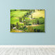 Canvas landscape print of a zigzag winding, cypress tree lined road through the green fields in Monticchiello, Tuscany in Italy.