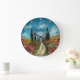 CYPRESS TREES AND POPPIES IN TUSCANY ROUND LARGE CLOCK
