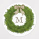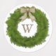 This label has a pretty evergreen cypress wreath with a ribbon tied in a bow. Customise it with your monogram or any letter of your choice.