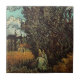 Cypresses and Two Women by Vincent van Gogh is a vintage fine art post impressionism landscape nature painting. A symbol of friendship, best friends taking a walk down country lane in the south of France. A view of cypress trees with two female figures and white fluffy clouds in a blue summer sky. A farmhouse and fields are in the distance.