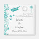 Beautiful save the date magnet specially designed for a wedding in Cyprus. Images of the island of Cyprus, butterfiles, palm tree and fancy retro style side swirls in aqua. Postmark text reads: Destination Cyprus. Easy to customise, simply put in your relevant details.