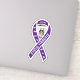 Show support for a little one fighting cystic fibrosis with this purple ribbon awareness sticker. Design features the purple ribbon symbol with the child's photo in the centre, and customisable white text on the top and front loop of the ribbon. Shown with the child's name and "cystic fibrosis." The other loop of the ribbon is adorned with small white butterflies.