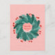 Original illustration of a decorated Christmas spruce and pine branches with red berries and snow saying Veselé Vánoce, wchich means Merry Christmas in Czech. In modern coral red peach and dark mint colours.