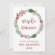 Green and red Christmas holiday wreath holiday card, with the words Merry Christmas in in Czech: Veselé vánoce.
