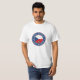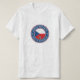 The national flag of the Czech Republic is infused into a circle shape which in itself, is decorated in the flag colors. Aside from the flag, there is a map outline of the country plus the coat of arms.