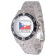 Has heft and feel of expensive stainless steel quartz watches. Good band with safety catch. I removed links, which is easy because engraved arrows show direction to push the linking pins. As always by this seller, the image (a railroad logo) is a perfect reproduction of my emailed image, and is precisely spaced and aligned.