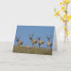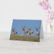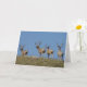 Mule Deer Bucks in Velvet Card. Mule deer bucks in velvet covered antlers crest a tall hill under a clear blue sky on a warm spring morning.
