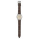I was uncertain about the size being too small but it looks good. The case looks like aluminum (not shiny) and the time is easy to see. I changed the band because the leather doesn't go with my lifestyle.a. Exactly what I expected, nice yellow. It grabs peoples attention.