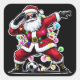 Dabbing Santa Christmas Lights Soccer Square Sticker
