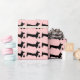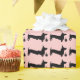 Dachshund with party hat and cupcake silhouette over vintage pink or change background colour as preferred.