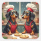 Adorable Dachshunds baking Christmas cookies in a cozy holiday kitchen. This festive painting captures the warmth and joy of the season — perfect for dog lovers and holiday décor enthusiasts.