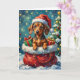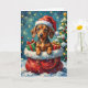 A festive and fun Christmas illustration featuring a single Dachshund sitting inside Santa’s bag full of presents while wearing a Santa hat. With glowing fairy lights, warm cozy lighting, and a festive red and green color palette, this design is perfect for dog lovers, holiday enthusiasts, and anyone who enjoys cheerful holiday artwork. Ideal for Christmas gifts, apparel, mugs, cards, and seasonal home decor.