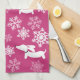 Dachshund Christmas Snowflakes Magenta Dish Towel
