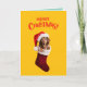 A Dachshund is wearing a Santa hat and is sticking out of a Christmas stocking.