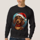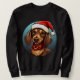 The patient dachshund is looking forward to a frosty Christmas party. The loving dachshund is already reading Christmas stories for his family.