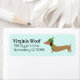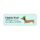 Imagine a festive return address label featuring a jolly dachshund with its tiny legs dancing with holiday cheer, as it mischievously wags its tail. Above this merry scene, your address is written in cheerful, curvy script, making every envelope you send out a tiny sleigh of dachshund delight! 🐕🎄✉️