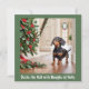A funny greeting card for Christmas with dachshund picture. The cute pup is looking at festive holly, with the caption 'Dachs the Hall with Boughs of Holly', a play on the title of the traditional song 'Deck the Hall...' Sure to appeal to dog lovers (and who doesn't love a cute doxie?) this amusing card will bring a smile to family and friends this holiday season.