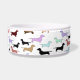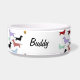 Cute bowl for your pet to eat or drink out of. It features lots of little dachshund dogs all over it in many colours. There is a space to customise your pet's name.