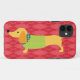 Cute and fun case features a dachshund dog with a coat or sweater. Argyle patter in the background. Modern and attractive design great for any age. Ideal for an animal lover.