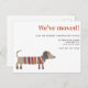 Featuring a fun and quirky Dachshund dog, perfect for dog lovers who want to share their exciting news with a touch of humour. The front features a whimsical illustration of a Dachshund wearing bright and playful striped knitwear. Whether you're moving across town or across the country, this announcement is a great way to keep your friends and family updated on your new address. Get ready to wag your tail in excitement! Original art by Nic Squirrell.