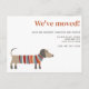 Featuring a fun and quirky Dachshund dog, perfect for dog lovers who want to share their exciting news with a touch of humour. The front features a whimsical illustration of a Dachshund wearing bright and playful striped knitwear. Whether you're moving across town or across the country, this announcement is a great way to keep your friends and family updated on your new address. Get ready to wag your tail in excitement! Original art by Nic Squirrell.